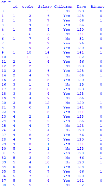 For, example, for id=1, the ‘Salary’ column is [5, 6, 7,8,9,6,4,12,5,14,15]. Hence, the Binary column should be [0, 0 , 1, 1, 0, 0 ,0 ,1 , 0 , 1 ,1]