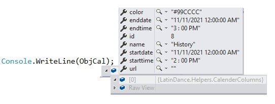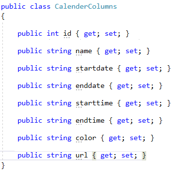 List<CalenderColumns> ObjCal = new List<CalenderColumns>();