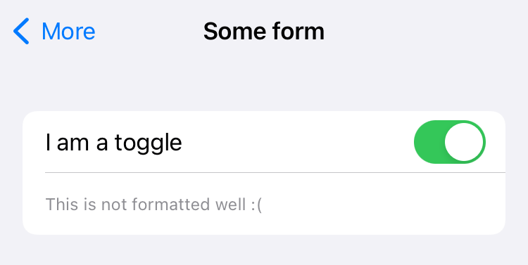 I’m trying to replicate a common view that I’ve seen in the iPhone settings where you can see some settings field and underneath it, there’s an explanation text:
