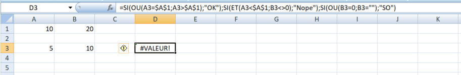 =SI(OU(A3=$A$1;A3>$A$1);"OK";SI(ET(A3<$A$1;B3<>0);"Nope";SI(OU(B3=0;B3="");"SO";"Omelet du fromage")))