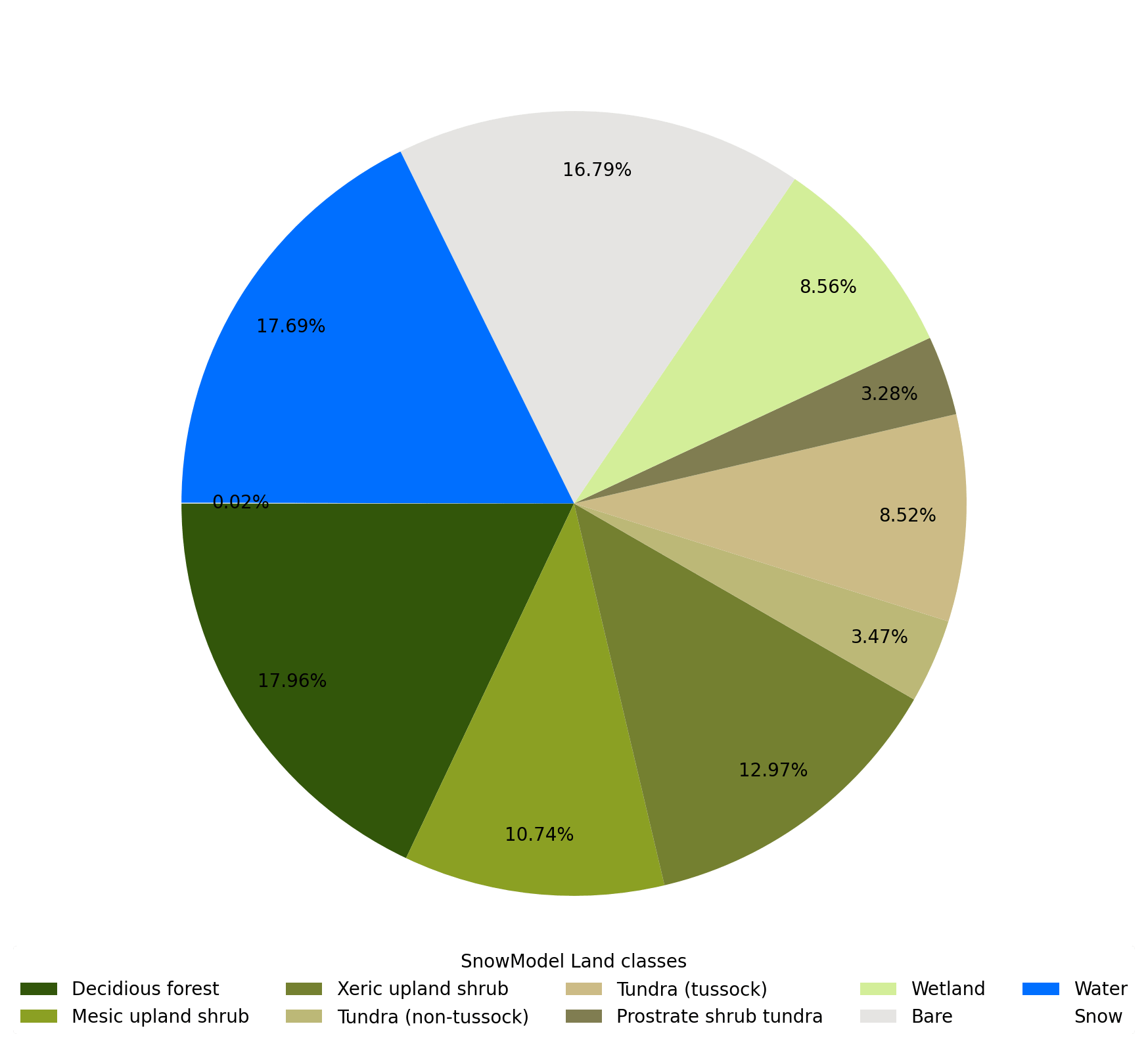 labels = ['Decidious forest', 'Mesic upland shrub', 'Xeric upland shrub', 'Tundra (non-tussock)','Tundra (tussock)','Prostrate shrub tundra', 'Wetland', 'Bare', 'Water', 'Snow']