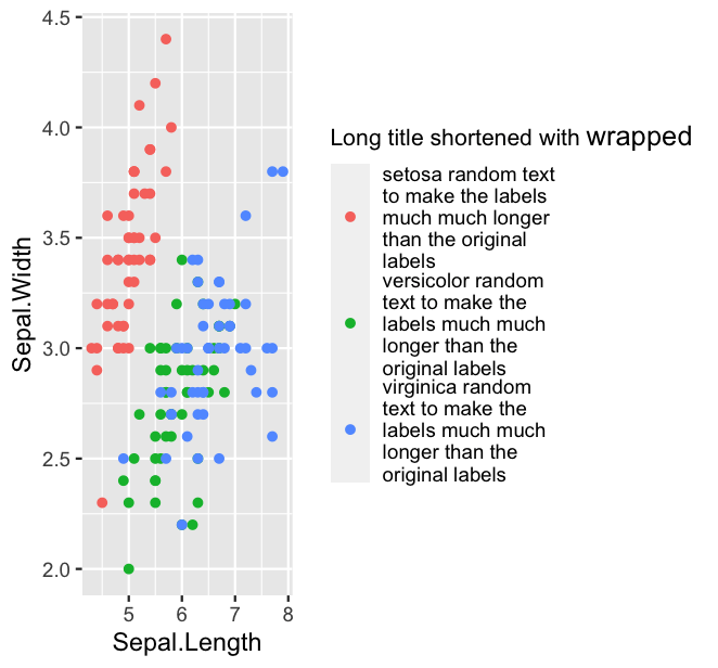 labs(colour="<span style='font-size:10pt'>Long title shortened with </span><span style='font-size:12pt'>wrapped</span>") +