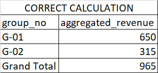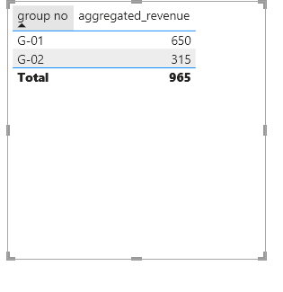 When I create a summed table by group_no I have below table in Power BI:
