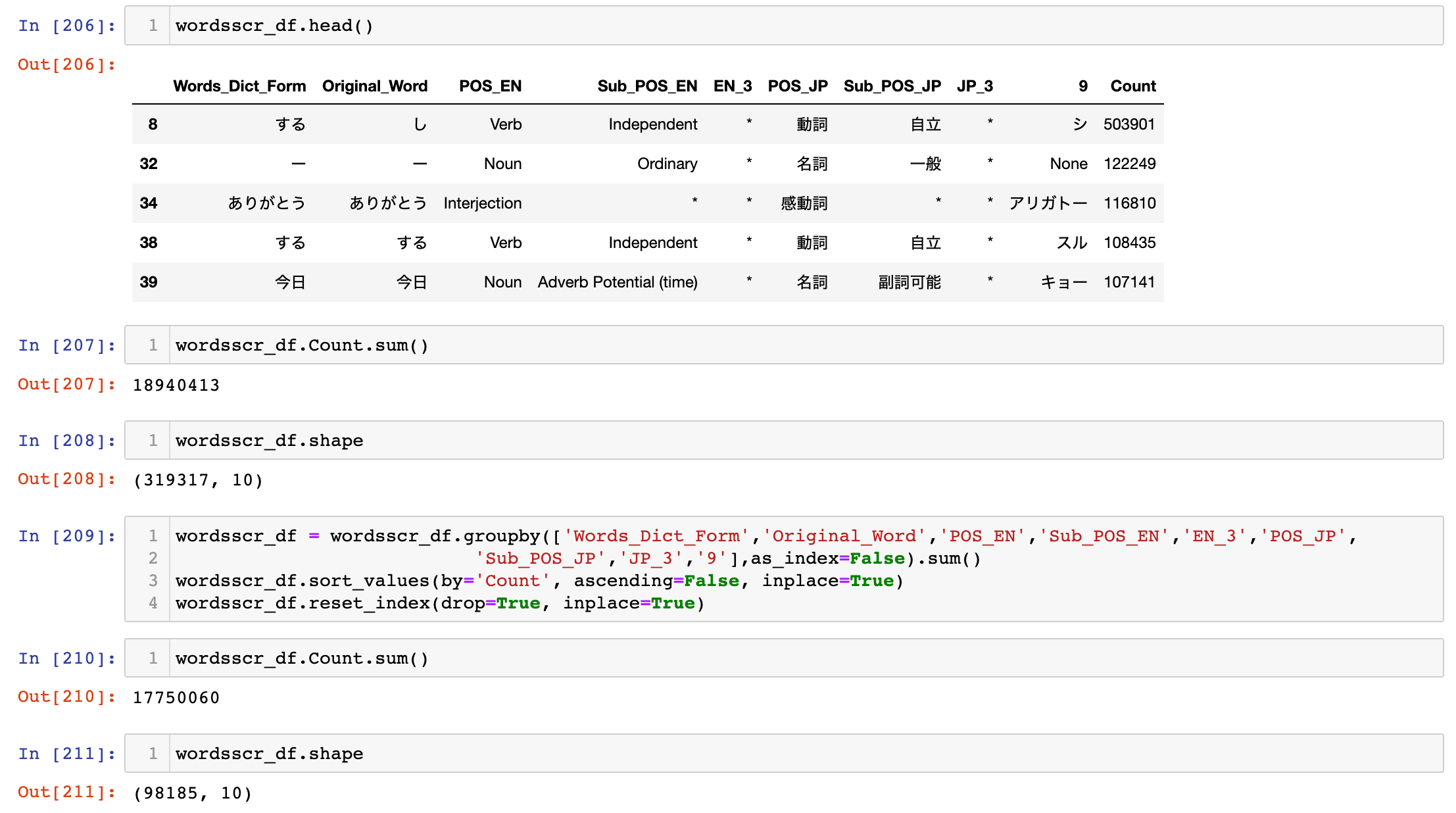 I expect the number of rows to decrease but the total sum of the "Count" column shouldn’t change.