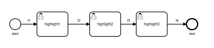 When the highlight1 UserTask has been completed but the highlight2 UserTask is still pending, I ran the following code to highlight the completed flow element.