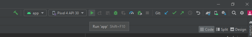 So, you should select your emulator on a top bar, and click on green triangle to launch app. App will install automatically.