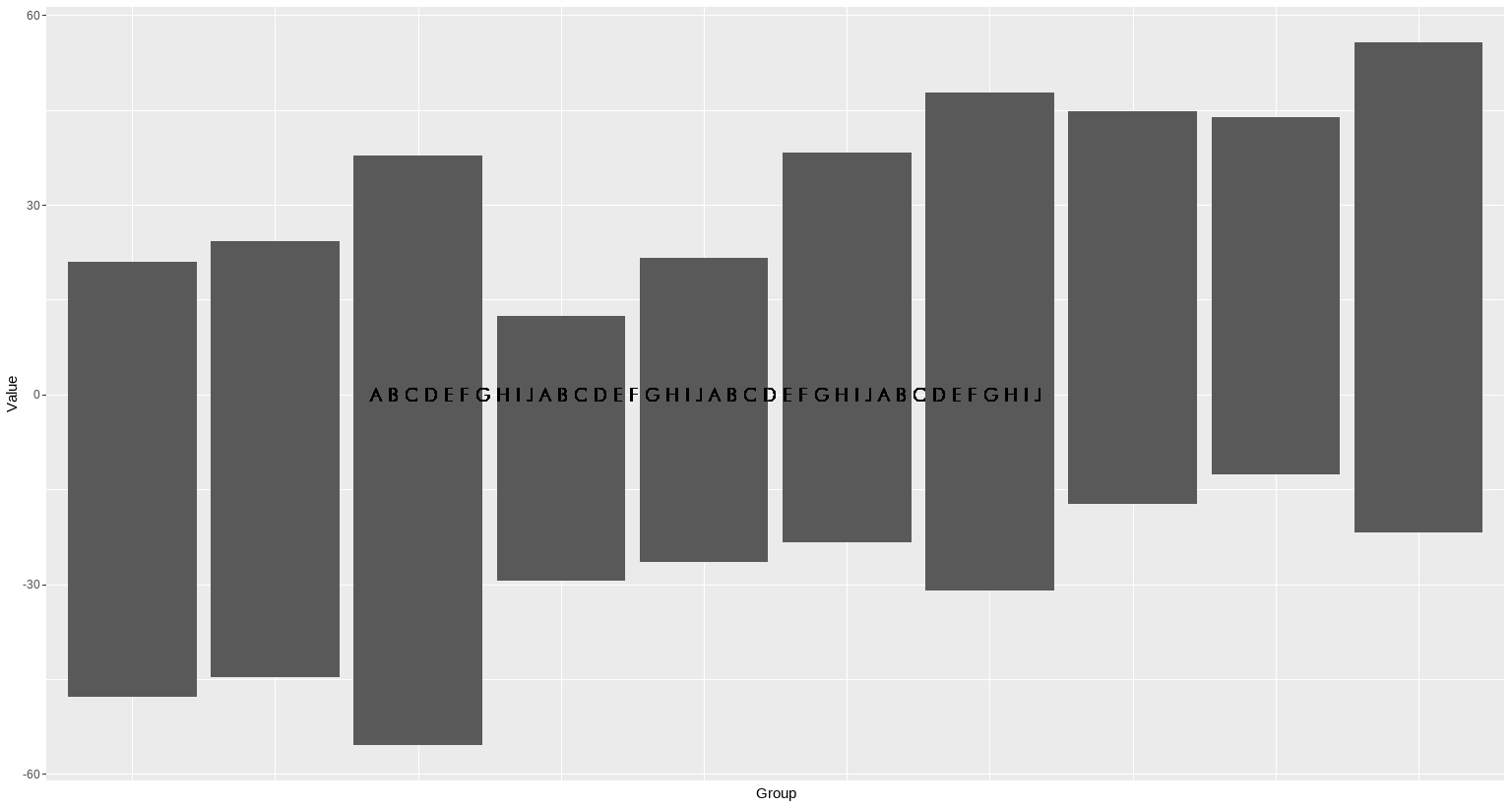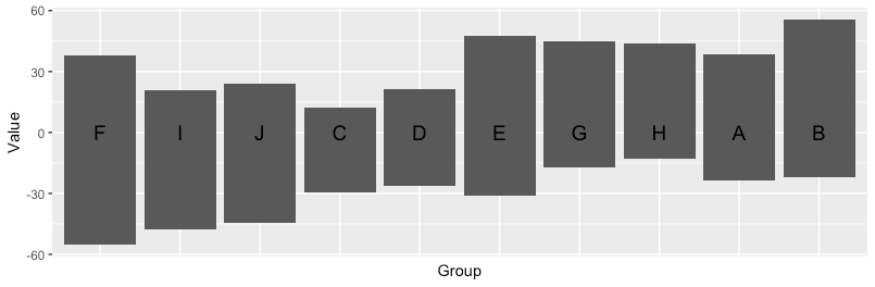 But I still needed to show the X-axis text. I thought about displaying it at the base of one set of bars (the positive ones). Like this: