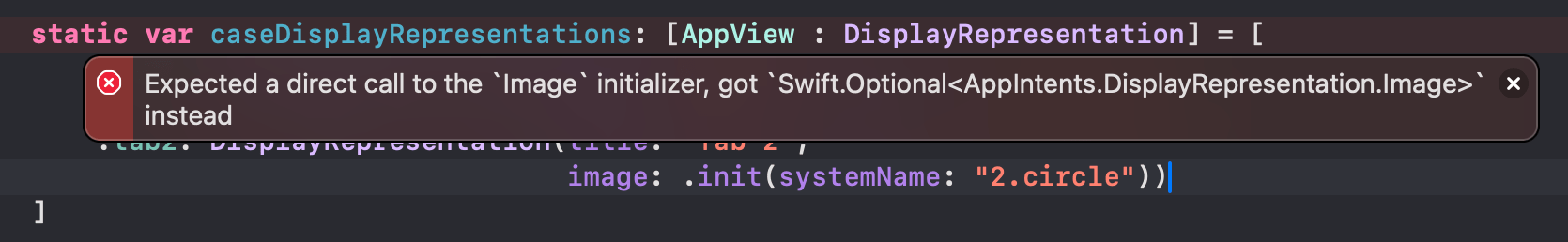 Imageinitializer, gotSwift.Optional<AppIntents.DisplayRepresentation.Image>instead