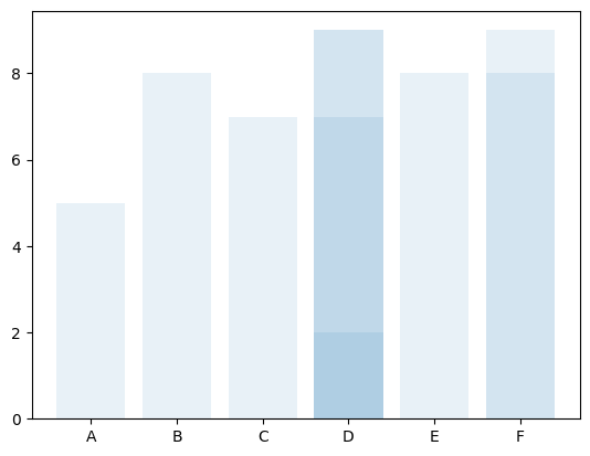 I was expecting for example the F bar to have 8+9=17 and not only 9 (the last value for F).