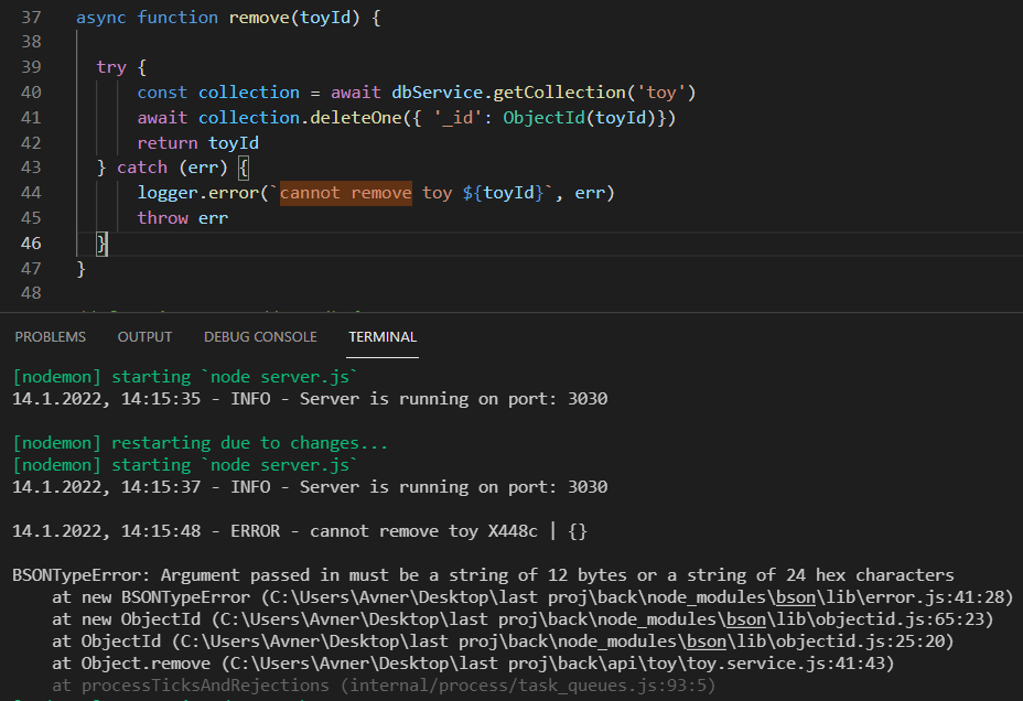 await collection.deleteOne({ '_id': ObjectId(toyId)})