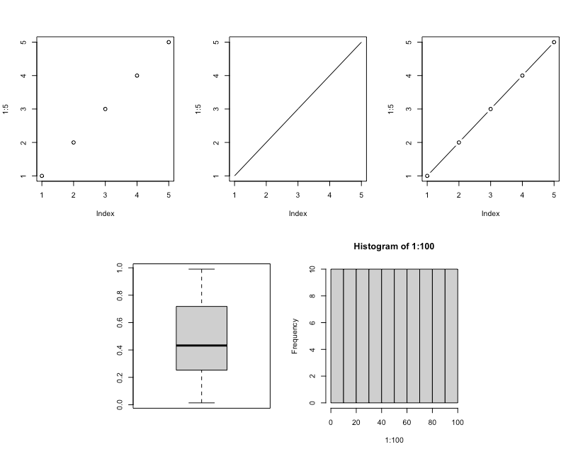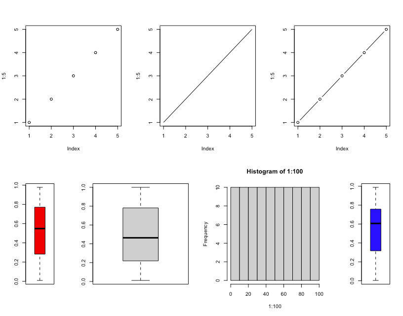 I have 5 plots (let’s call them p_1 through p_5). I want to display them all together in a grid: three of them on the first row, and the two left on the second (and last) row. Naturally, this can be achieved with par(mfrow = c(2, 3)). However, I want the two bottom plots to be centered, so there’s no one-big-space on the bottom-right of the grid. How can this be achieved?