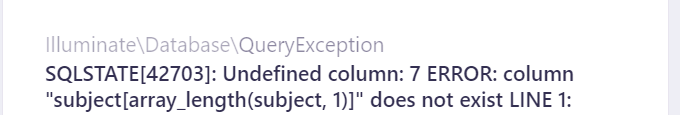 ->selectRaw('subject[array_length(subject, 1)] as last_subject')