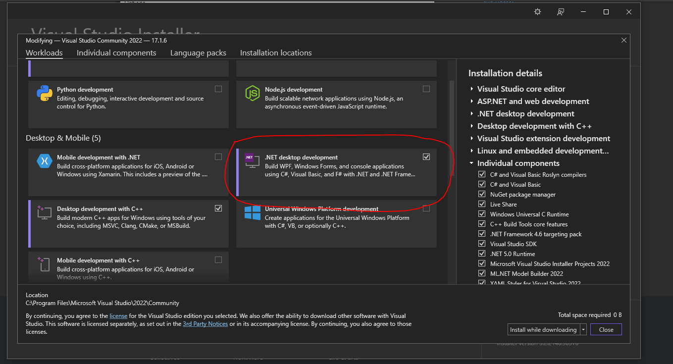 - For good practice, you should also install the C# packages for Visual Studio 2022.