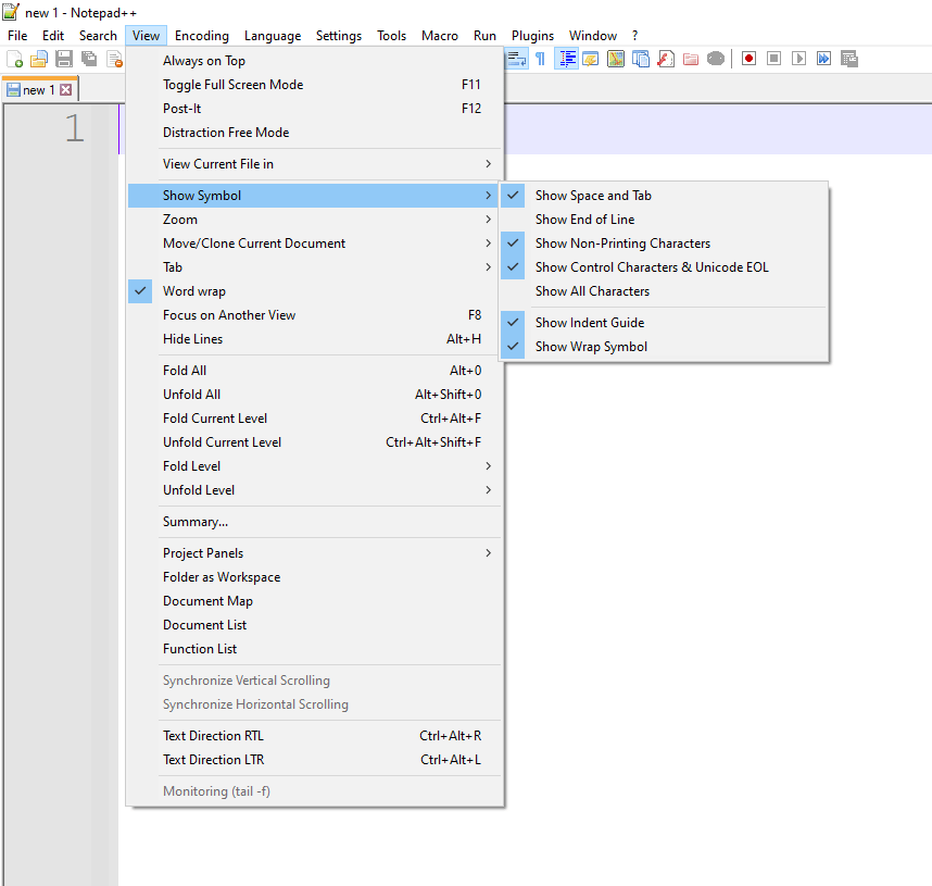 Show Non-Printing CharactersShow Control Characters & Unicode EOL