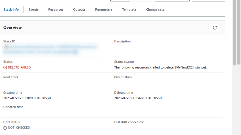 The stack was successfully created. I was able to ssh into the ec2 instance. but now i want to remove this stack. i.e the Ec2 instance