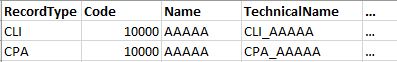 SELECT 'CPA' as RecordType, Code, Name, CONCAT('CPA', Name) as TechnicalName, ... FROM Temp