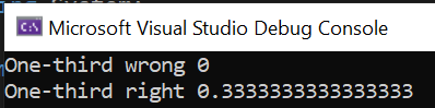 Console.WriteLine($"One-third right {1/(double)3}" );