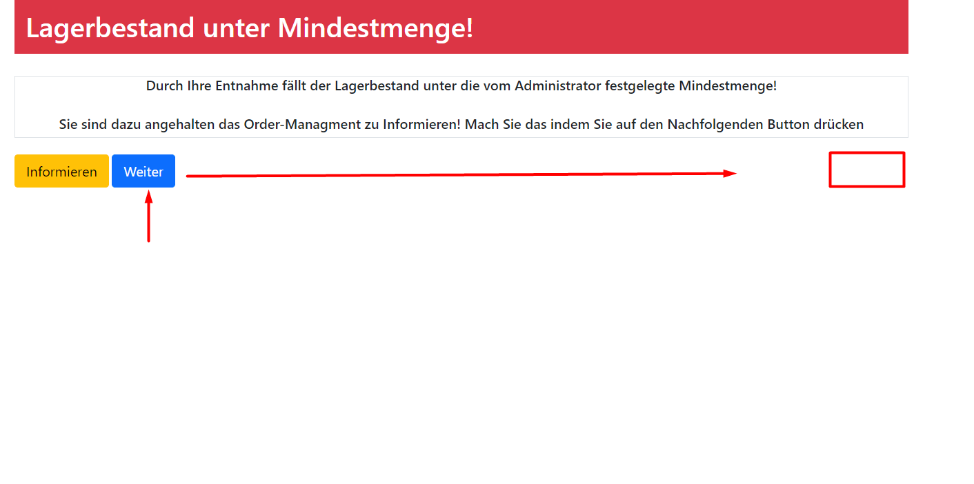 <p class="h5 text-center">Durch Ihre Entnahme fällt der Lagerbestand unter die vom Administrator festgelegte Mindestmenge! </p>