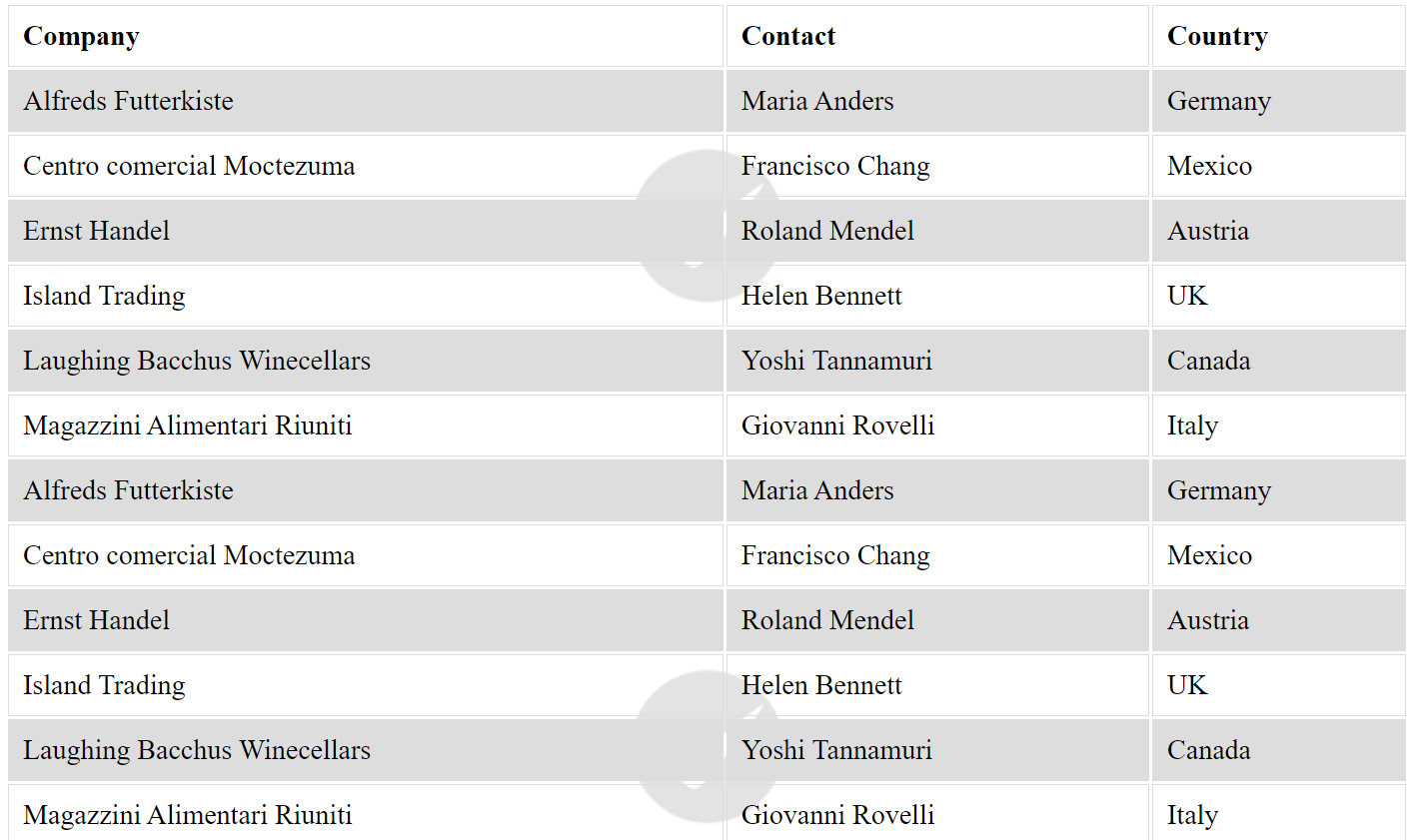 I have a table with alternate rows having a background color for better readability. The table element also has a background image which repeats throughout the table as a watermark.