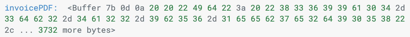 When I run getAsPDF on the Xero side, I get a buffer output like this. I am trying to convert it to base64 format and send it as pdf, but I could not convert it to pdf format.