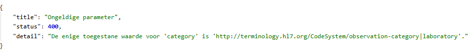 Detail = "De enige toegestane waarde voor 'category' is 'http://terminology.hl7.org/CodeSystem/observation-category|laboratory'.",