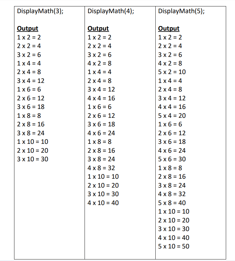 The tables in your picture are NOT random, though. There is a definite pattern. The function, DisplayMath(), is receiving an integer parameter; 3, 4, and 5 in the picture.