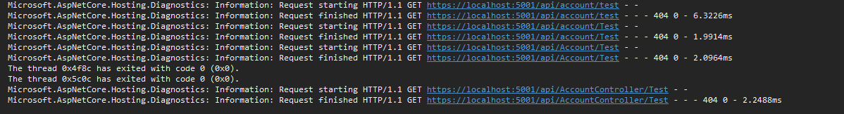 but all of them return a 404 eerror. Why might that be every thing looks correct from what I see. This is on a project I was converting from MVC app to Web API