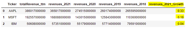 Ticker totalRevenue_ttm revenues_2021 revenues_2020 revenues_2019 revenues_2018 revenues_2021_Growth revenues_2020_Growth revenues_2019_Growth