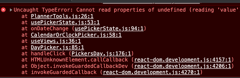 By seeing above code, seems like DatePicker isn’t returning you an event object.