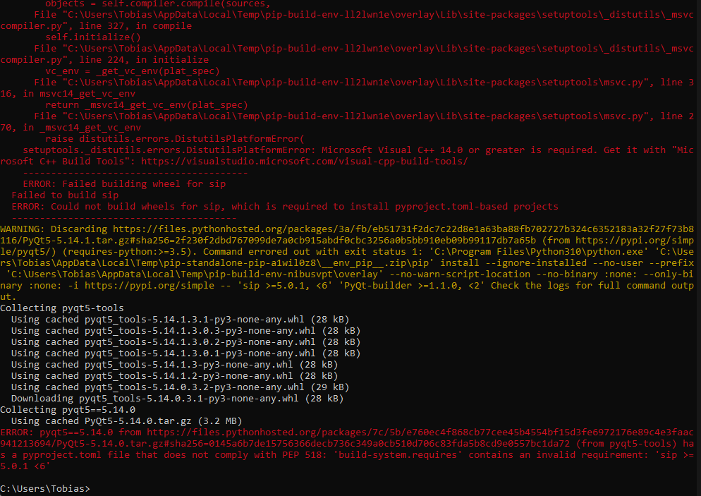 Furthermore if I try to install PyQt5-tools everything goes absolutely nuts and I just can’t figure out what is going wrong where and it’s driving me insane.