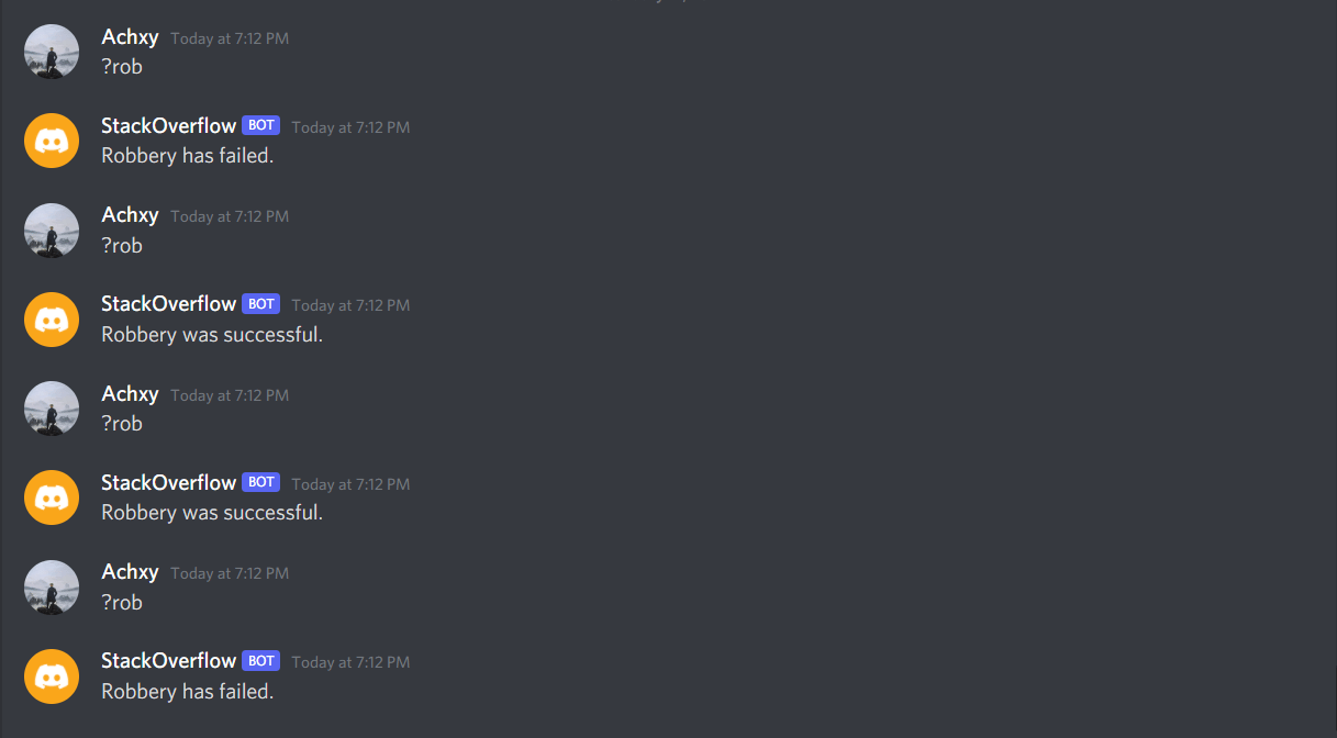 Is that possible to add "chances" to the code? i mean that when someone executes the command then ex: 45% that the robbery will not succeed? If yes, then how?