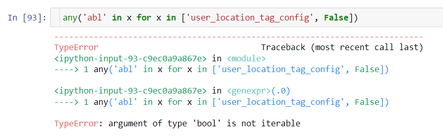 I want to check if a substring exists in a list. But i can’t iterate through it because of it having booleans. I’m trying to convert booleans to str(booleans) but is that necessary? I’m sure there must be another efficient way without changing data