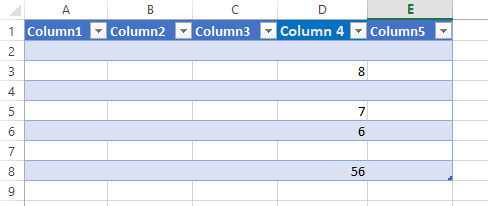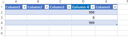 Before closing this workbook, I need to clear Column D content (shown as "Column 4" in the Table1), only where column D cells value = 999.