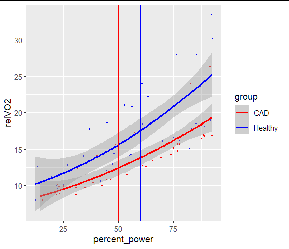 ggplot(aes(x = percent_power, y = relVO2, color = group)) +