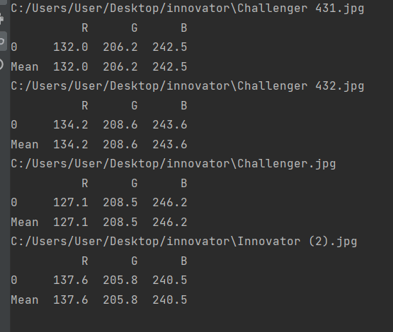 I use the following script to measure the average RGB color of the picture in a selected path.