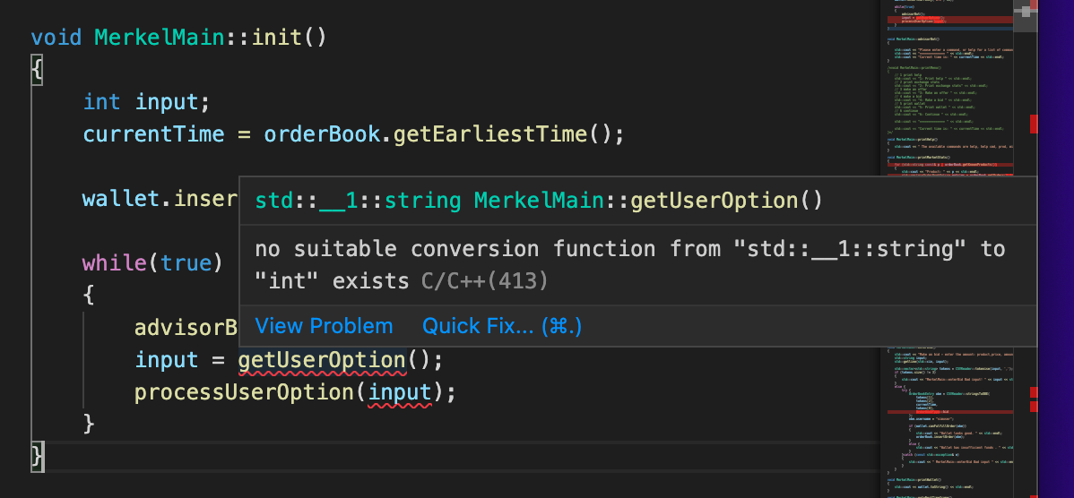 std::cout << "MerkelMain::enterAsk Bad input! " << input << std::endl;
