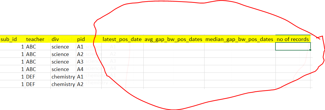 df.set_index(['sub_id','teacher','div','pid']).groupby(['sub_id','teacher','div','pid'])['pos_date'].median()