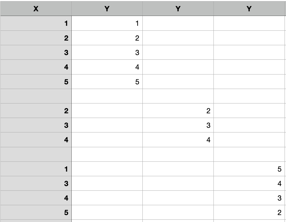 My intention is to copy X as an index or one column (it doesn’t matter) and append Y columns from each ‘ID’ in the following way: