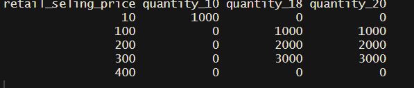 # retail_seling_price quantity_10 quantity_18 quantity_20