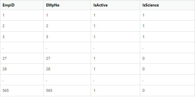 | EmpID | EMpNo | IsActive | IsScience |