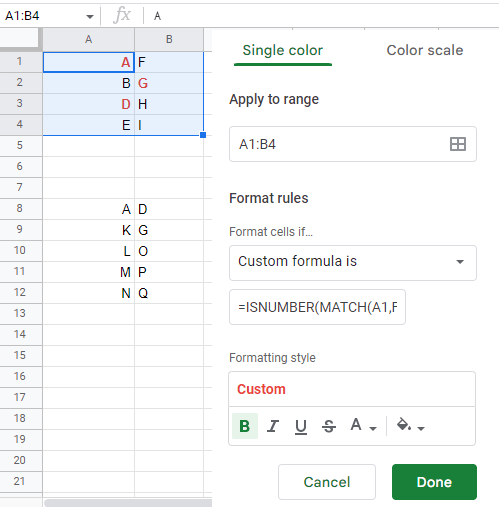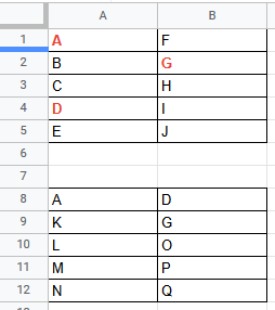 I’m trying to bold and change text color to red in the the top table, for text match that also exists in the bottom table.