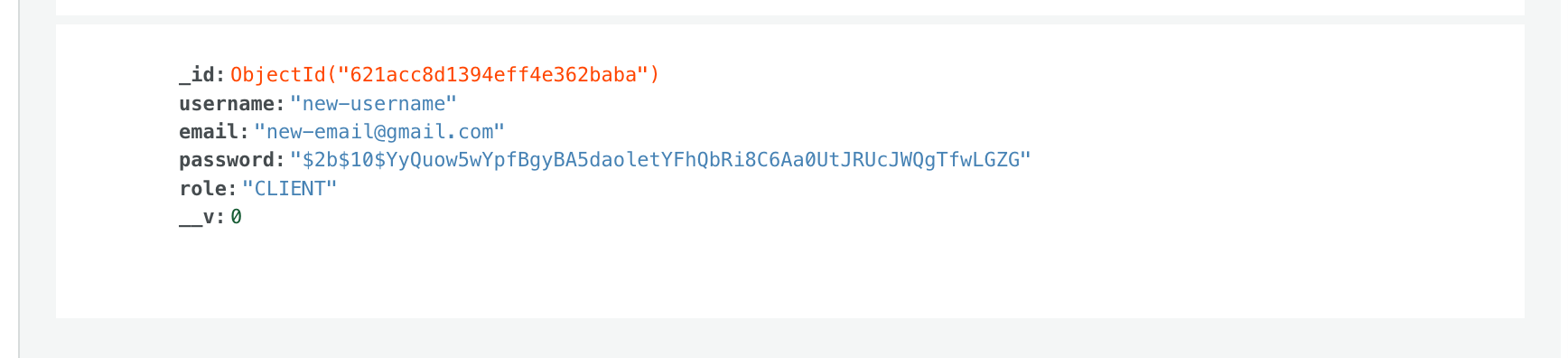 Also, as you can see here, my new registered user has been added to my already established MongoDB collection