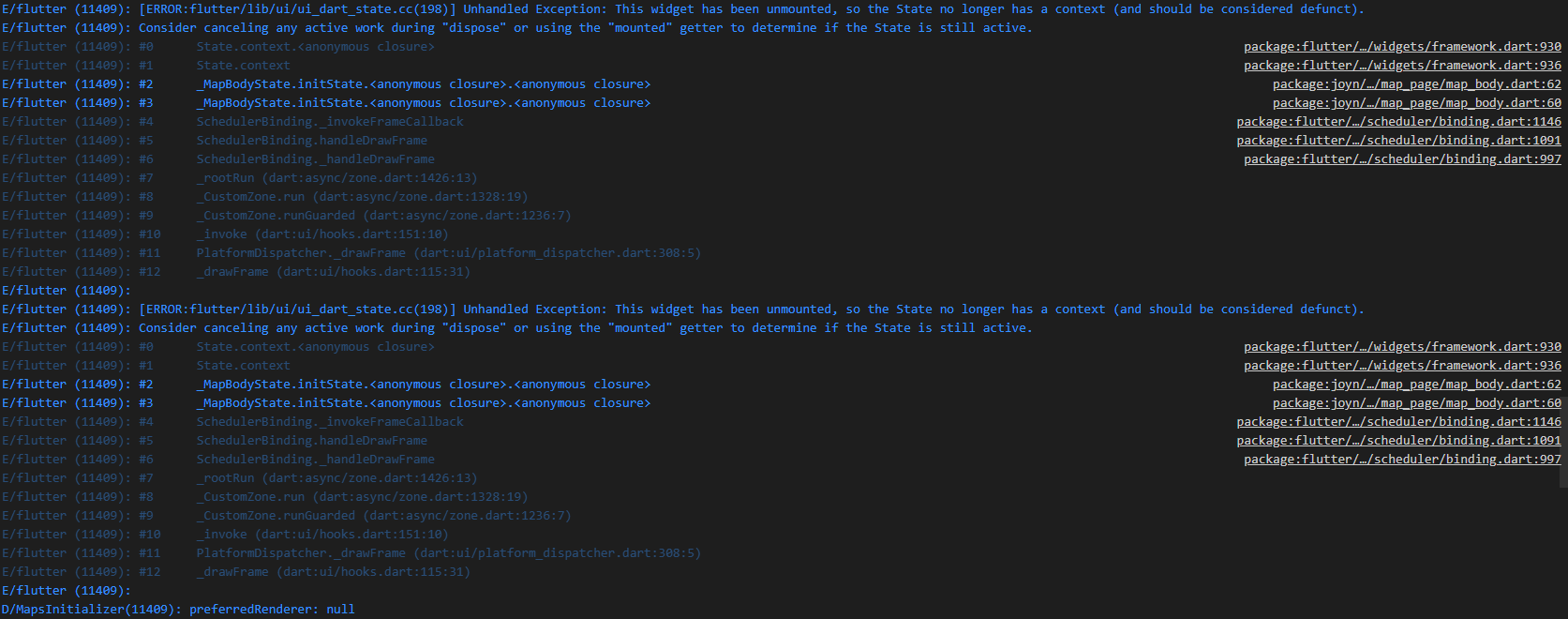 In the initState() method, I use requests to the server when the page is opened, and there is also an addListener method that listens for changes to the variable and calls methods if it has changed. But I encountered a small error that appears in the terminal when addListener works for me, the application continues to work but a warning constantly appears (I attached a screenshot below). Can you tell me how to get rid of this warning and this is an error, most likely because I do not close addListener?