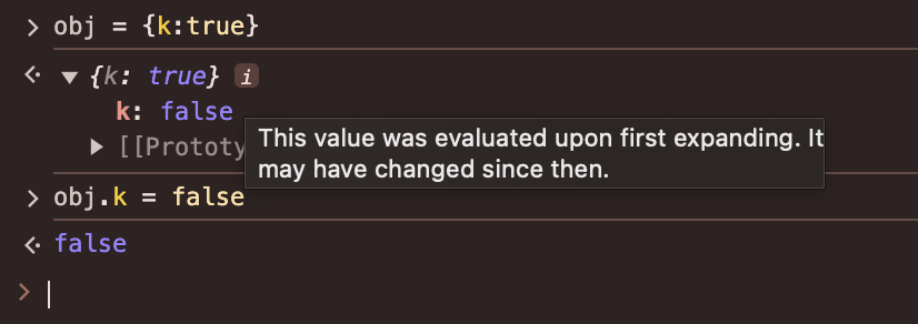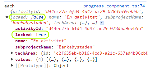 I print out my object to the console. It clearly shows that the value of field locked is true. However, unfolding it to view closer details, shows the value of false. At the same time!