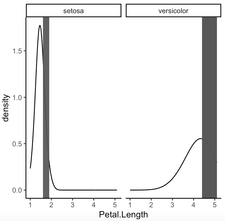 filter(Species == "setosa" | Species == "versicolor") %>%