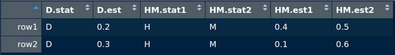 row2 = list(D = data.table(stat = "D", est = 0.3), HM = data.table(stat = c("H","M"), est = c(0.1,0.6))))
