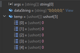 UInt16[] temp = { 0, 0, 0, 0, 0 };