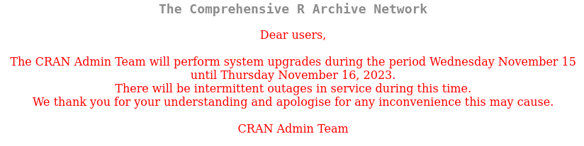 You can still access the mirrors. One example it the CDN you can reach at https://cloud.r-project.org. And I would expect the main site to keep its word and to be back ‘soon’, likely by Nov 16 as scheduled.