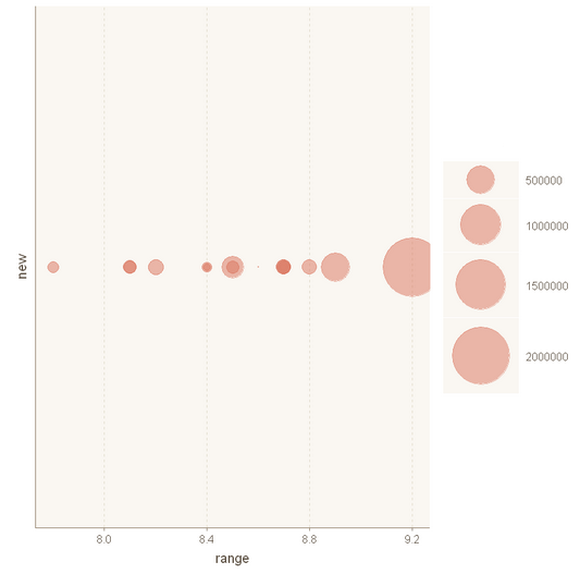 I want to create a bubble plot without the y axis, meaning the x axis represents a range between certain values and the size of the bubbles corresponds to a "number" variable.