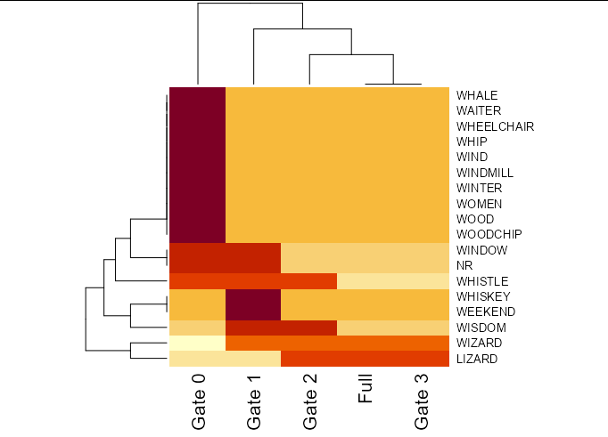 heatmap(with(Wizard_heatmap, as.matrix(table(factor(Response), factor(Gate)))))